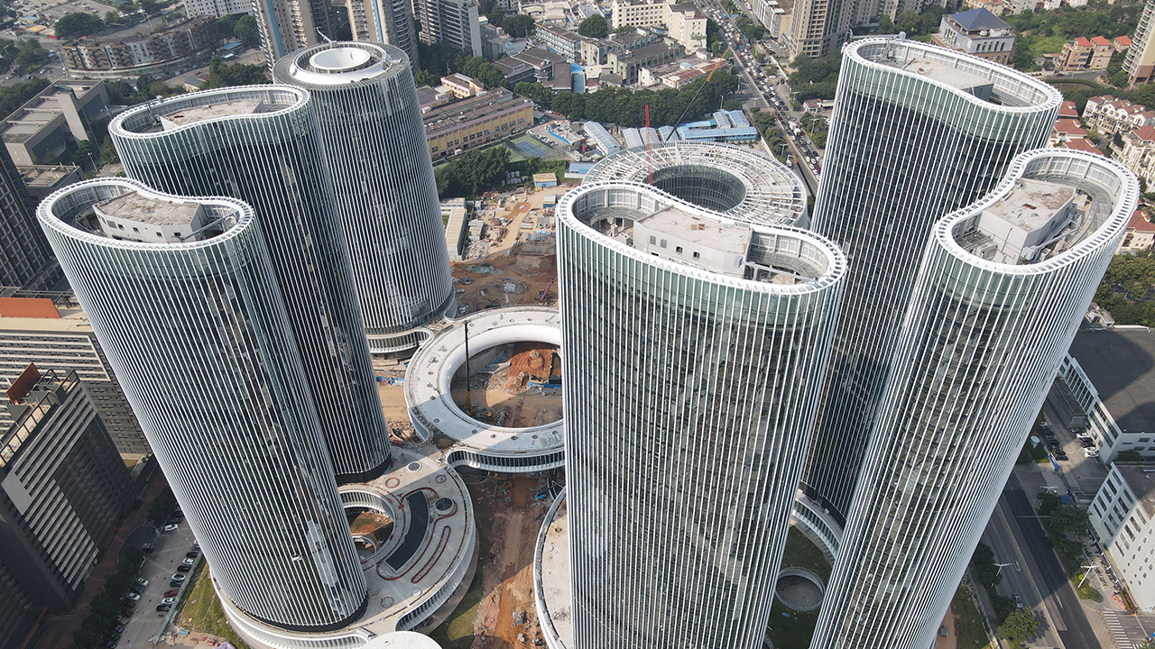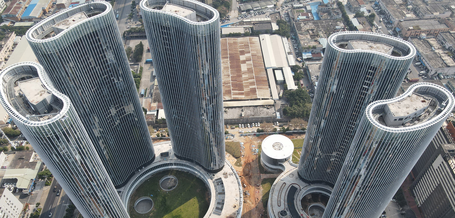 幕墙面积:约11.3万m² 项目设计:美国KPF建筑事务所 幕墙类型:框架式玻璃幕墙、弧形铝板幕墙系统、铝合金格栅系统等
