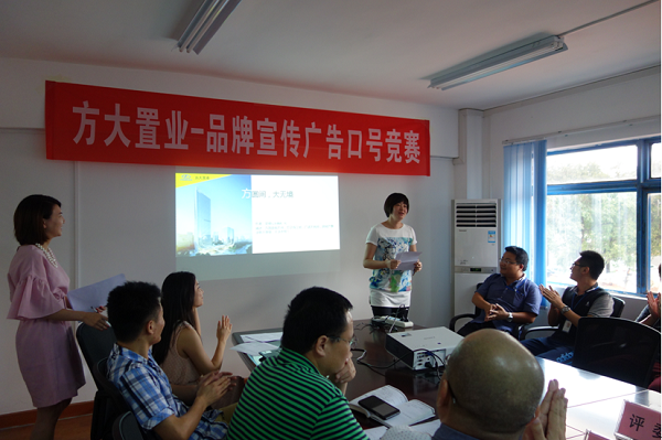 7月16日,方大置业“品牌宣传广告语口号竞赛”活动决赛在方大广场综合楼三楼会议室举行。经过三周时间的征稿、作品展示、初选、复选,最终选出了十篇优秀作品进入决赛。方大置业总经理及相关领导、办公室和营销策划部负责人担当本次决赛评委。