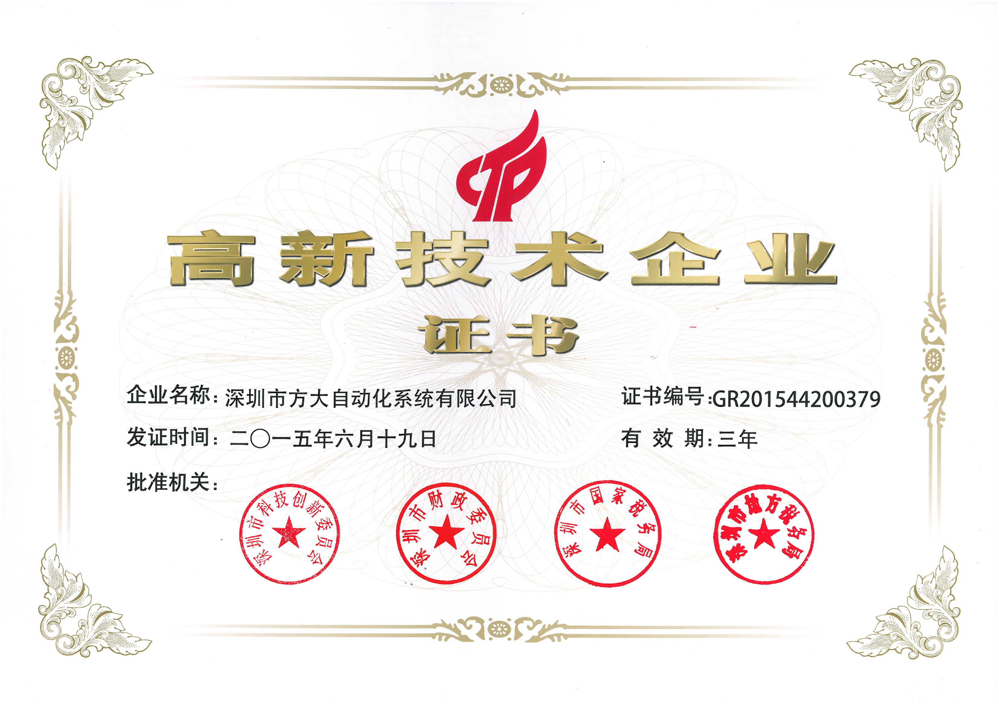 近期,根据科技部、财政部、国家税务总局《高新技术企业认定管理办法》和《高新技术企业认定管理工作指引》的规定,经企业申报、地方初审、专家审查、公示等严格的申报程序,开云在线平台全资子公司深圳市方大建科集团有限公司、深圳市方大自动化系统有限公司被认定为国家高新技术企业,成为深圳市2015年第一批国家高新技术企业。