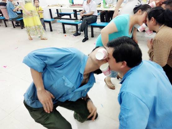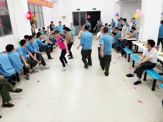 在员工享用美食与水果的同时,当晚现场进行了踩气球、夹传瓜子与纸杯传水三轮游戏,每个游戏都由寿星们自由组队参与。第一个游戏“踩气球”,两人三足需要高度的协调与配合,为了躲避对手突袭,寿星们上蹿下跳,左右摆动,动作滑稽,惹得全场哄堂大笑;第二个游戏“夹传瓜子”,大家争分夺秒往下一位队友手中输送瓜子,在输送的过程中如果瓜子不慎掉落只好重新开始,在围观人员的助威呐喊声中,寿星们加快步伐只为成功夹传更多的瓜子;最后一个游戏“纸杯传水”,要求选手们动作谨慎且快,配合度高,为把纸杯的水倒入队友的纸杯中时能够滴水不漏,大家的传输POSE千奇百怪,笑料百出,现场一片欢声笑语。