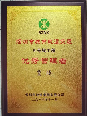 10月28日,深圳市城市轨道交通9号线开通运营,11月18日,在深圳市城市轨道交通9号线开通参建单位表彰大会上,深圳市方大自动化系统有限公司荣获“深圳市城市轨道交通9号线工程突出贡献奖”称号,自动化公司项目经理贾隆荣获“深圳市城市轨道交通9号线工程优秀管理者”称号。