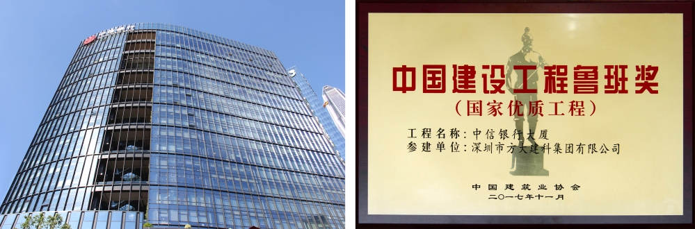 11月6日,2016~2017年度中国建设工程鲁班奖(国家优质工程)在北京发布,方大集团全资子公司深圳市方大建科集团有限公司承建的三项幕墙工程荣获该奖项——深圳中信银行大厦、深圳当代艺术馆与城市规划展览馆以及南京河西地区综合性医院(河西儿童医院)-门诊医技病房楼。