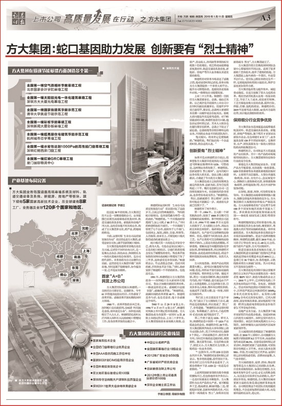 - 第三版稿件: 方大集团:蛇口基因助力发展 创新要有烈士精神