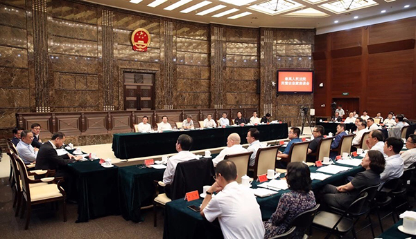 最高人民法院党组成员孙华璞主持座谈会。最高人民法院院领导李少平、马世忠、罗东川、杨万明、刘贵祥出席会议,最高人民法院有关部门负责人,及柳传志、梁稳根、陈东升、王玉锁、刘庆峰、张文中、洪崎、王均军等来自科技、金融、医药、教育等不同领域的22位民营企业家参加会议。