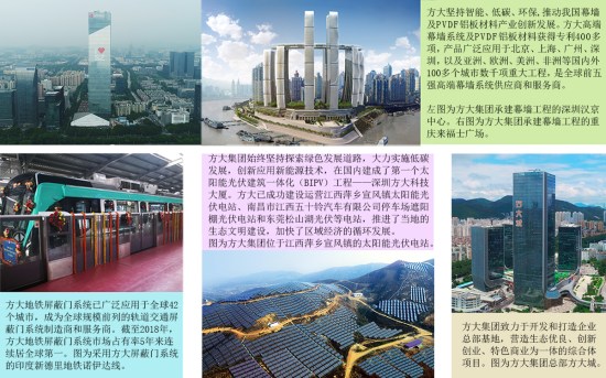 方大集团始终坚持探索绿色发展道路,大力实施低碳发展,创新应用新能源技术,在国内建成了第一个太阳能光伏建筑一体化(BIPV)工程——深圳方大科技大厦。方大已成功建设运营江西萍乡宣风镇太阳能光伏电站、南昌市江西五十铃汽车有限公司停车场遮阳棚光伏电站和东莞松山湖光伏等电站,推进了当地的生态文明建设,加快了区域经济的循环发展。