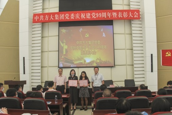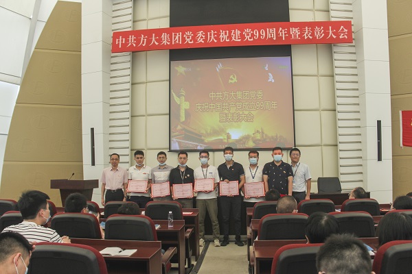 2020年7月1日,中共方大集团党委庆祝中国共产党成立99周年暨表彰大会在深圳方大大厦报告厅召开。会议对方大集团先进党组织、优秀共产党员、优秀党务工作者进行表彰,并组织预备党员进行入党宣誓。方大集团党委书记魏越兴出席会议并讲话,会议由党委委员、纪委书记周志刚主持,驻深企业全体党员、驻外受表彰的先进党组织负责人代表、优秀共产党员、入党积极分子参加会议。
