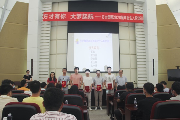 周志刚与人力资源部副部长贾松涛为在培训中表现优异的学员崔瑜等5人颁发奖状。结营仪式最后,应届生新员工积极上台发表感想,他们表示虽然入职方大不久,但已为方大屹立在世界各地的高楼幕墙、保障全球42个城市轨道交通线的地铁屏蔽门设备感到自豪,未来也希望自己参与的项目成为方大的骄傲。
