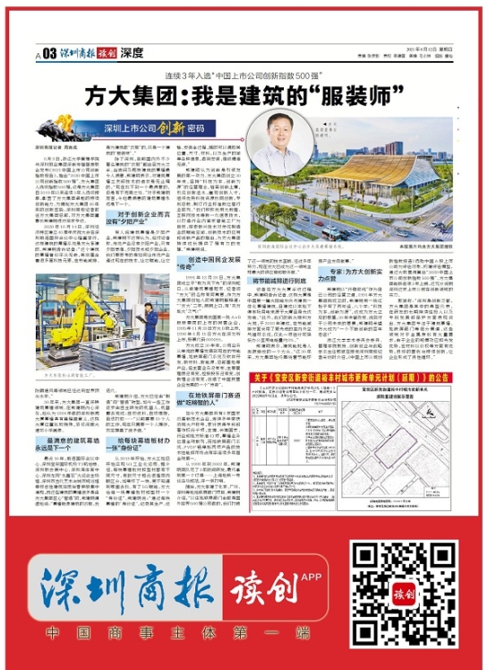 郭斌称:“深圳是创新之都,方大集团是其中的典型代表,在研发的长期持续性投入以及专利发展和保护方面表现突出。方大集团专注于建筑幕墙、地铁屏蔽门等细分赛道,这些领域对于金属原料有大量需求,由于企业的规模效应和先发优势,在材料议价权等方面有优势,良好的营收与持续创新,让企业形成了良性循环。”